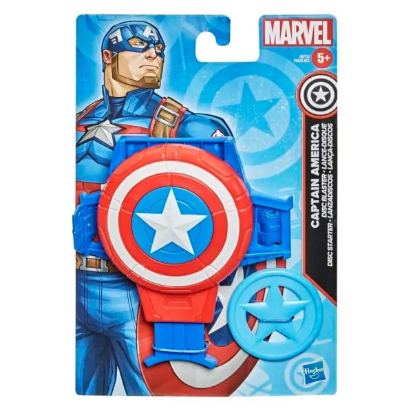 Lançador de Dardo - Capitão América - Escudo - Marvel - Hasbro: A criançada vai adorar esses novos blasters! Coloque o disquinho no escudo, mire para o alvo e pressione o gatilho do blaster para acertar seu alvo em cheio. Steve Rogers é um jovem que participa de experiências visando a criação do supersoldado americano. Quando os oficiais militares conseguem transformá-lo em um super humano, eles percebem que não podem arriscar a vida do jovem nas batalhas de guerra.