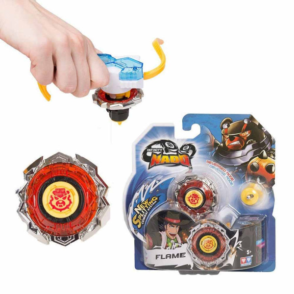 Flame é um personagem de Infinity Nado preparado para lutar. Seu pião vem com metal anel de ataque e pode ser reformado com acessórios para se tornar ainda mais poderoso. O Pião - Infinity Nado - Flame é único e possui novo sistema de combate. Foi projetado com precisão e com tecnologia avançada para elevar a performance nas disputas. Basta carregar o pião no lançador e puxar a corda para o pião Infinity Nado vai dar voltas sem parar!