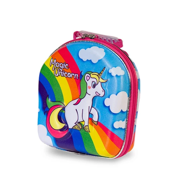 A Lancheira Escolar 3D Unicórnio Mágico é produzida em material de alta qualidade para garantir mais durabilidade e resistência. Ela conta com superfície impermeável e fácil de limpar. A criança pode carregá-la sem dificuldades com as alças que podem ser ajustadas nas costas. Modelo super leve e fácil de ser carregado por um adulto também.